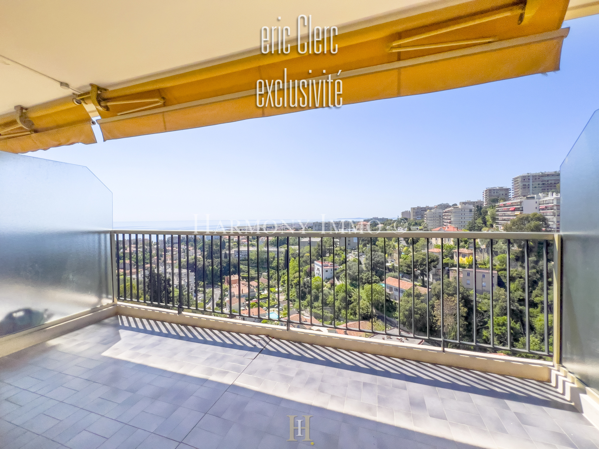 Nice (06200)ABBAYE DE ROSELAND. 2 pièces traversant , avant dernier étage, exposition principale PLEIN SUD, vue mer et parc. Cet appartement est largement ouvert sur une terrasse et un balcon. L'entrée dessert le séjour, la cuisine indépendante, la chambre, la salle de bains et le WC. Une buanderie est située à côté de la cuisine. La cuisine est neuve et aménagée (partiellement équipée) la salle de bains et le WC sont neufs. Climatisation. Chauffage et production d'eau chaude collectifs. Provision pour charges locatives : 250 €. Cave et garage. La copropriété offre parc, gardien, piscine et tennis. Les informations sur les risques auxquels le bien est exposé sont disponibles sur le site www.georisques.gouv.fr. Honoraires de location 787.48 €. Annonce proposée par Eric CLERC EI RCS NICE 431 516 632. EXCLUSIVITÉ. ABBAYE DE ROSELAND - 44 boulevard Napoléon III - 06200 NICE
