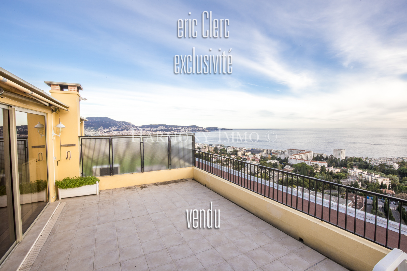 Nice (06200)Vendu le 08/04/2022. EXCLUSIVITE. NICE OUEST - EXCEPTIONNEL - Résidence Abbaye de Roseland. DERNIER ETAGE, SUD , VUE PANORAMIQUE MER, 2 pièces 61 m2 ouvert sur une terrasse et un balcon. SOLARIUM 50 m2 dont une partie aménagée en studio, cave, garage. La copropriété parfaitement entretenue offre l'agrément d'un vaste parc, d'une belle piscine, de terrains de tennis, de la sécurité. Aucune procédure en cours à notre connaissance. La copropriété comporte 100 lots principaux. Charges mensuelles 350 €. Annonce proprosée par Eric CLERC RCS NICE 431 516 632. EXCLUSIVITE.