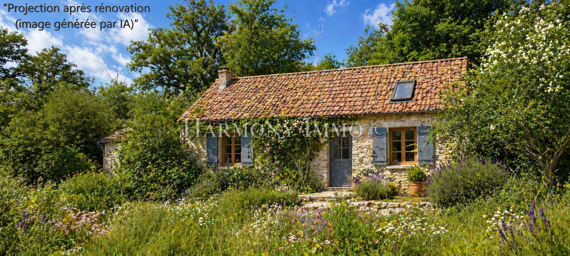 La maison nécessite des travaux de rénovation, permettant de repenser entièrement les espaces selon vos envies.Une projection après rénovation (illustration IA non contractuelle) est présentée afin d’aider à se projeter dans le potentiel du bien.