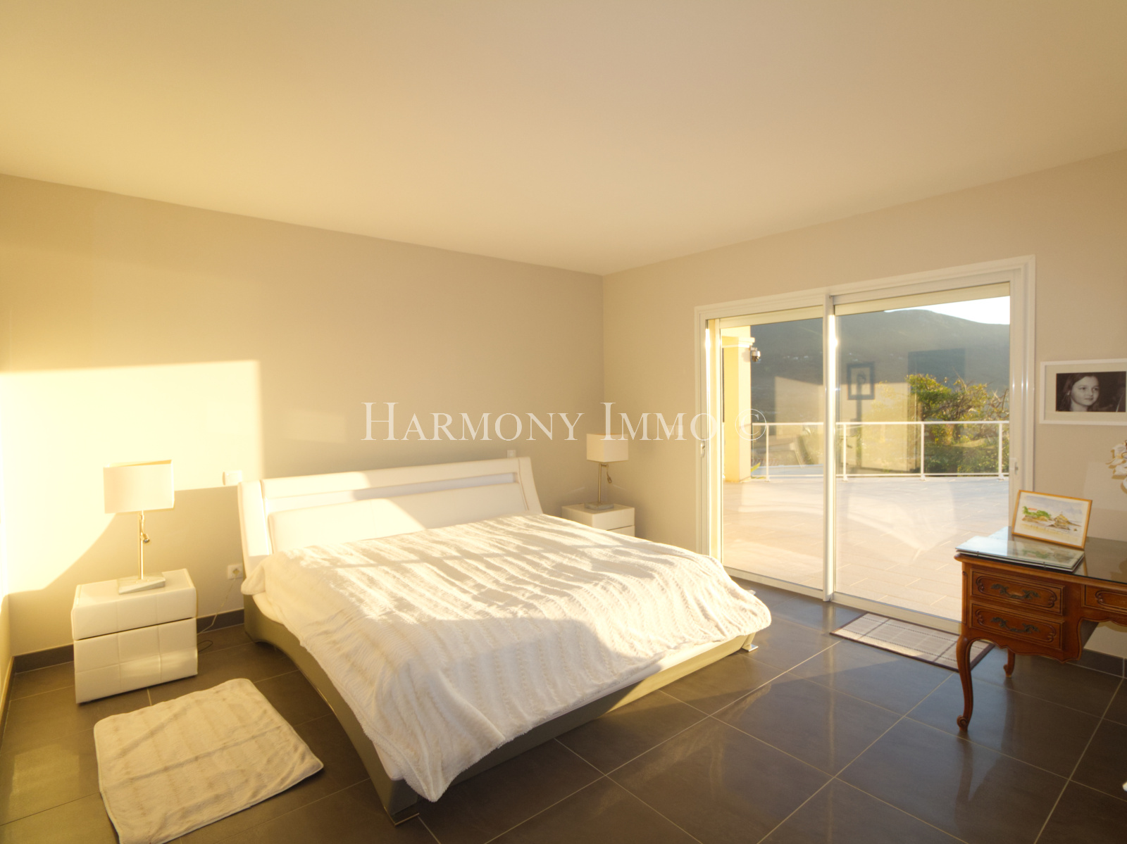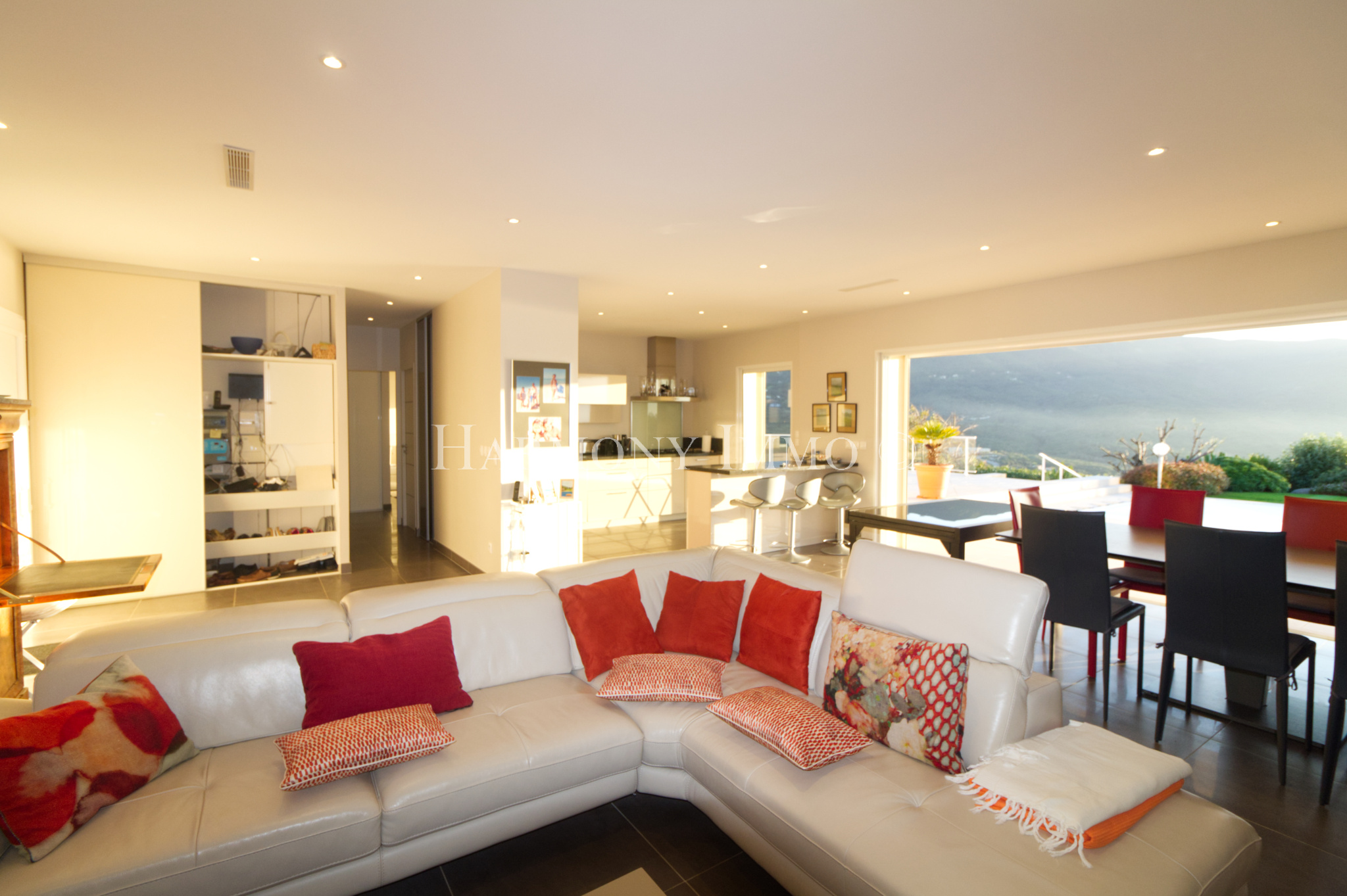 Cette villa de plain-pied très récente, nichée sur un promontoire vous offre une vue panoramique sur la grande bleue.