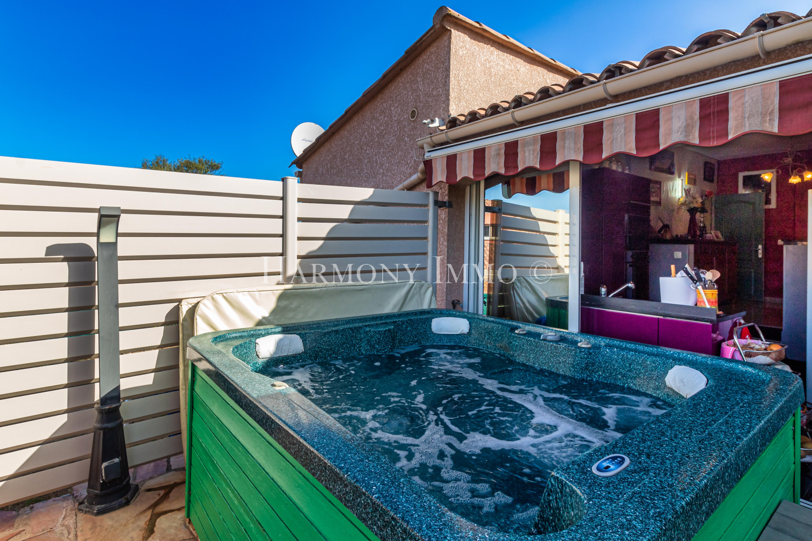 Cette villa de plain-pied est un véritable havre de tranquillité, offrant une exposition idéale au sud-est. Vous serez enchanté par sa luminosité grâce à une grande pièce à vivre qui s'ouvre sur une terrasse dotée d'une pergola bioclimatique et d'un jacuzzi.