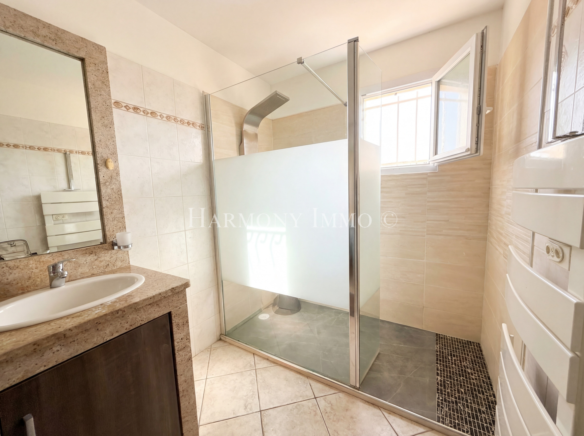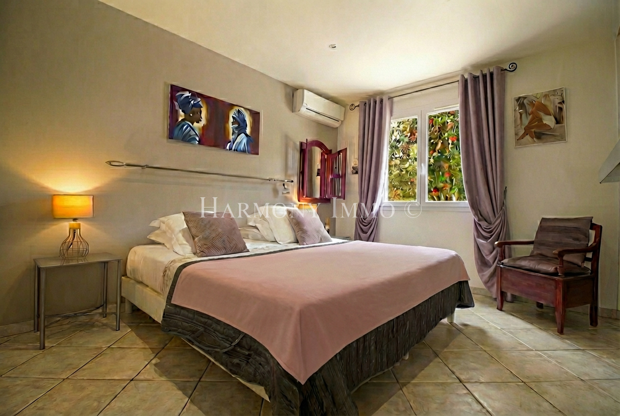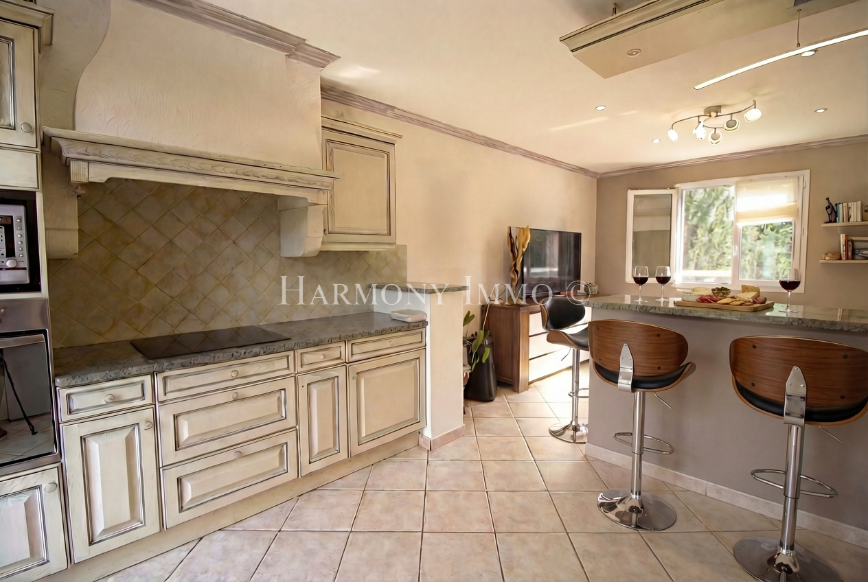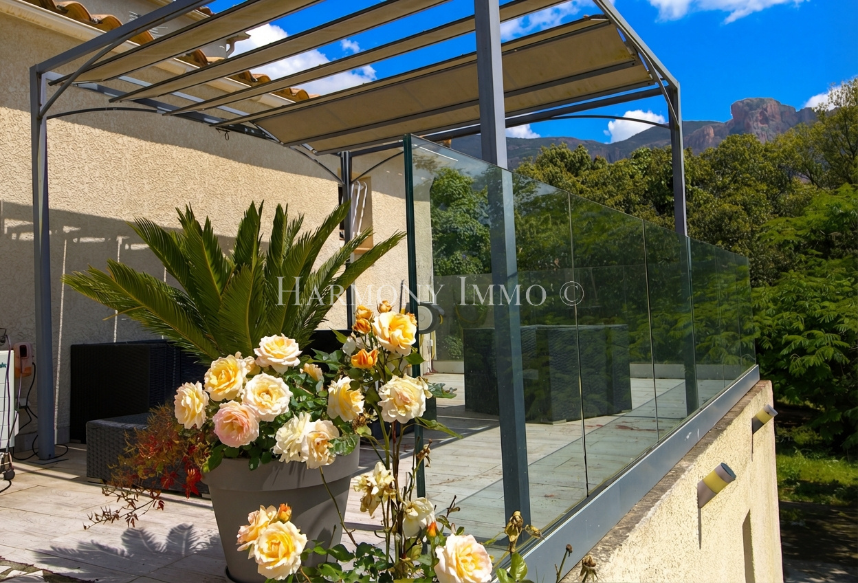Le véritable art de vivre méditerranéen s'exprime pleinement à l'extérieur. Depuis le salon, une terrasse couverte conduit à un espace piscine d'exception composé d'un bassin de 9 x 4,5 m aux margelles en pierre de Bavière, d'un jacuzzi intégré et d'un barbecue pour vos réceptions estivales. Le jardin paysager offre un cadre préservé, propice à la détente et aux moments de convivialité.