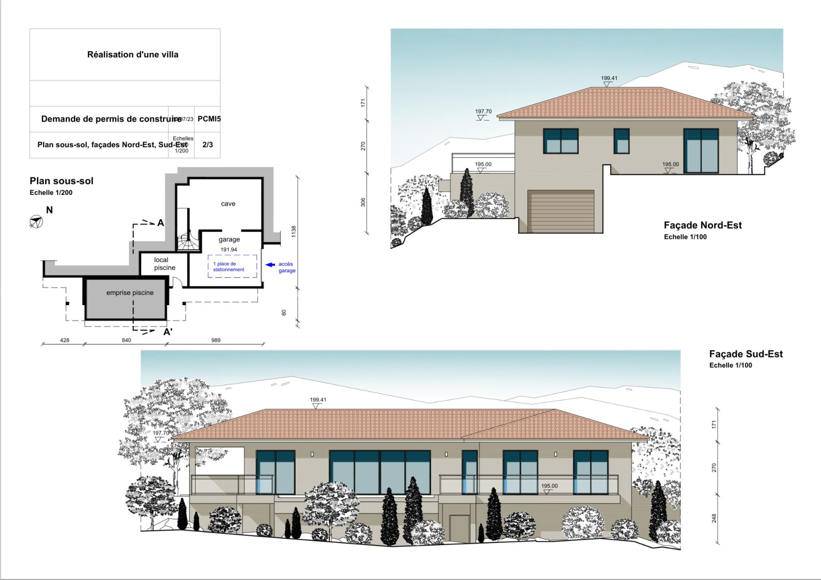 Permis de construire en cours de validité pour une villa de 208 m2 avec piscine.