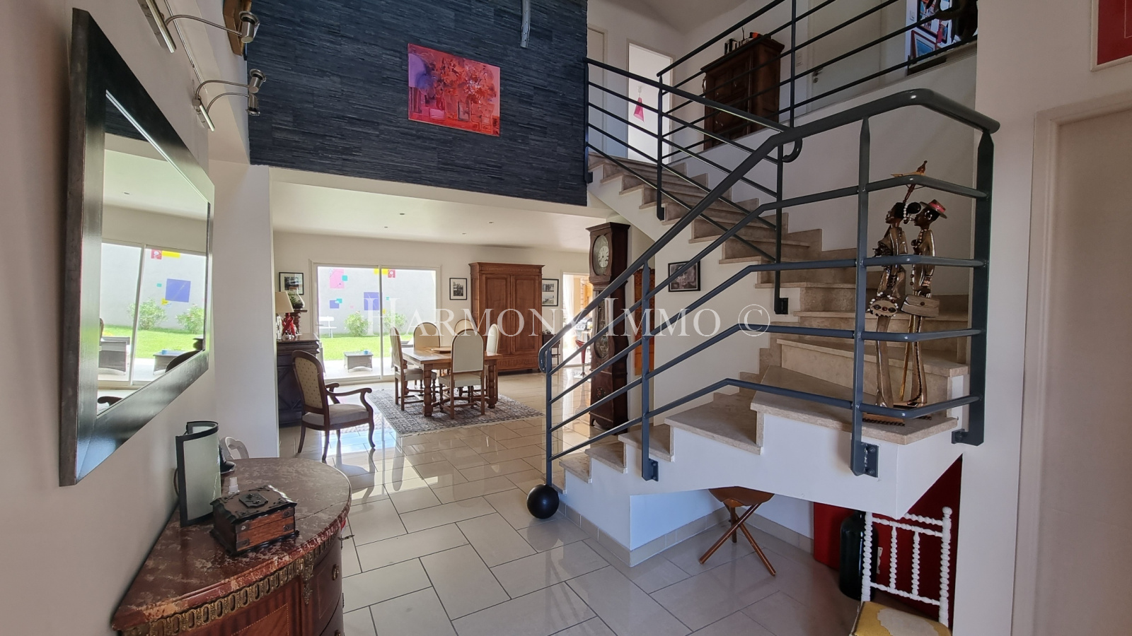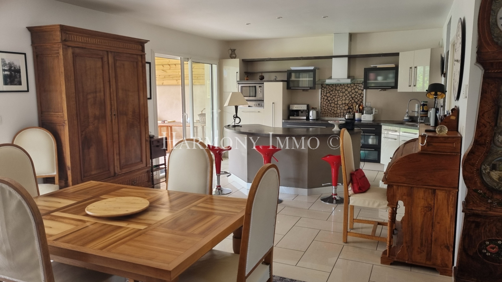 Montbrison (42600)Rare à la vente dans un secteur calme et tranquile: Superbe maison contemporaine repensée par un architecte en 2009, très proche du centre de Montbrison (250 m à pied). La maison est fonctionnelle de plain pied avec 1 chambre et 1 Sdb au Rdc (superficie RDC : 116 m2). La prestation est de niveau haut de gamme pour l' équipement et les matériaux: cuisine équipée Monier, pierre de bourgogne, grès cérame poli, bois massif ... Vous bénéficierez d' 1 séjour cuisine très lumineux de 35 m2 avec 2 grandes baies vitrées et d' 1 salon de 24 m2. Les deux pièces pouvant facilement se transformées en 1 seule magnifique pièce de vie de 59 m2 car elles ont entre elles 1 mur non porteur. Vous trouverez également 3 grandes chambres (avec des rangements) dont 2 à l' étage, 2 Sdb, 1 bureau, 1 cellier et 1 dressing. Le chauffage au sol par électricité est programmable par pièces avec délesteurs et thermostats. Les annexes comportent 1 très joli jardin plat de 150 m2 (piscinable), 1 garage double et 1 magnifique terrasse couverte (de 30 m2) équipée d' 1 spa de massage de 3 places. Cet ancien atelier de menuiserie a beaucoup de cachet et ne présente aucun vis à vis. Le tout dispose de très beaux volumes et ne nécessite aucun travaux.