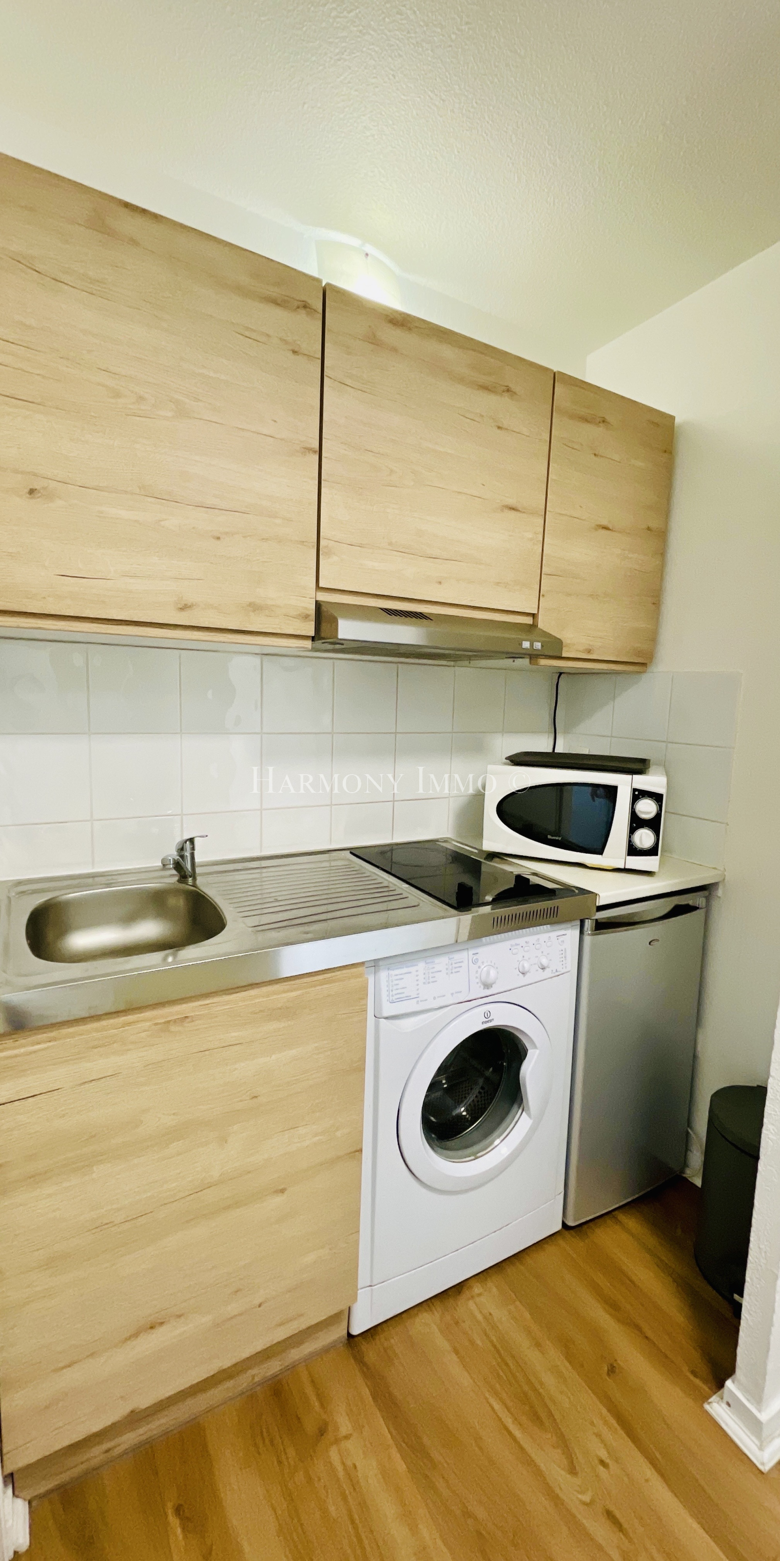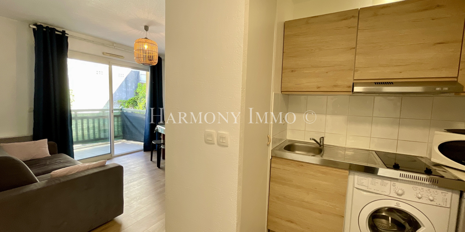 Cet appartement se compose d'une entrée donnant sur une pièce de vie avec kitchenette équipée, d'une pièce de nuit, d'une salle d'eau avec WC, et d'une terrasse de 10 m².