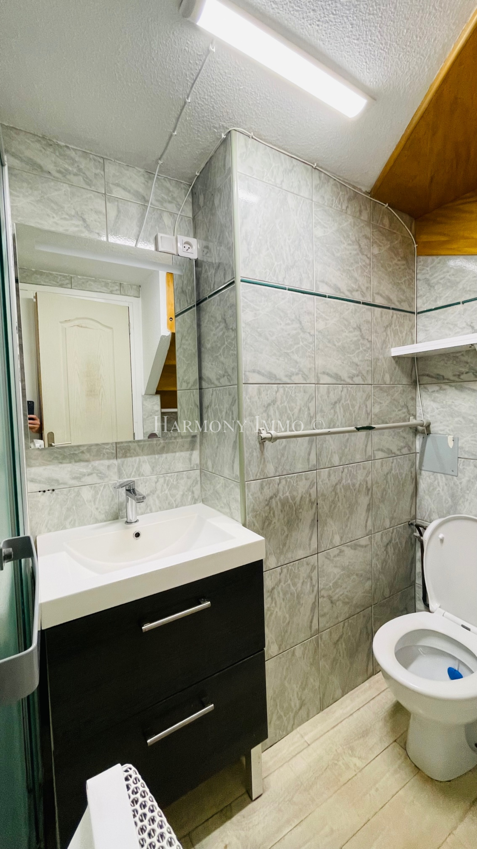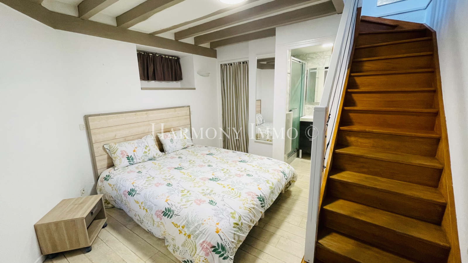 En souplex, une chambre avec placards, une salle d'eau avec Wc.