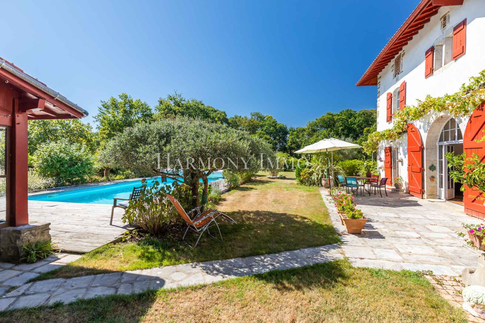 Vous découvrirez cette très belle maison basque au bout d'un petit chemin privatif végétalisé au coeur d'un parc arboré dotée d'une piscine, pool-house, terrasse ombragée et une vue sur la nature sans vis à vis.