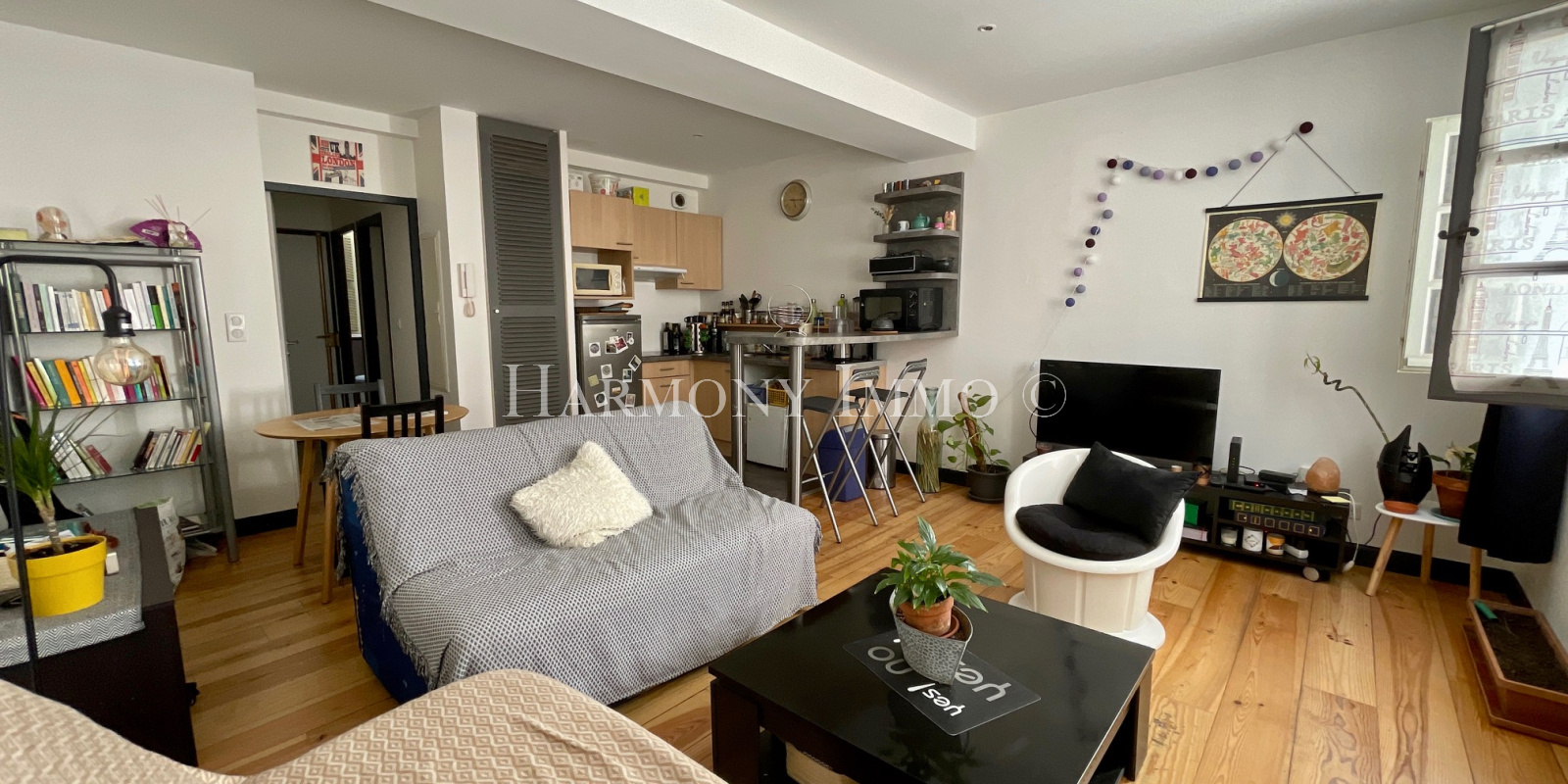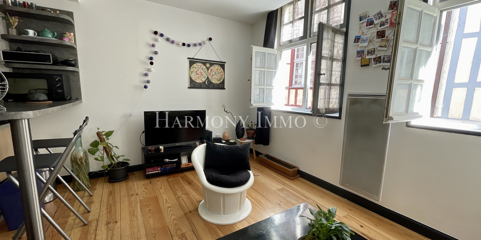 Il se compose d'une entrée avec placard, une pièce de vie avec cuisine aménagée et équipée, une chambre donnant sur cour intérieure, une salle d'eau avec Wc.