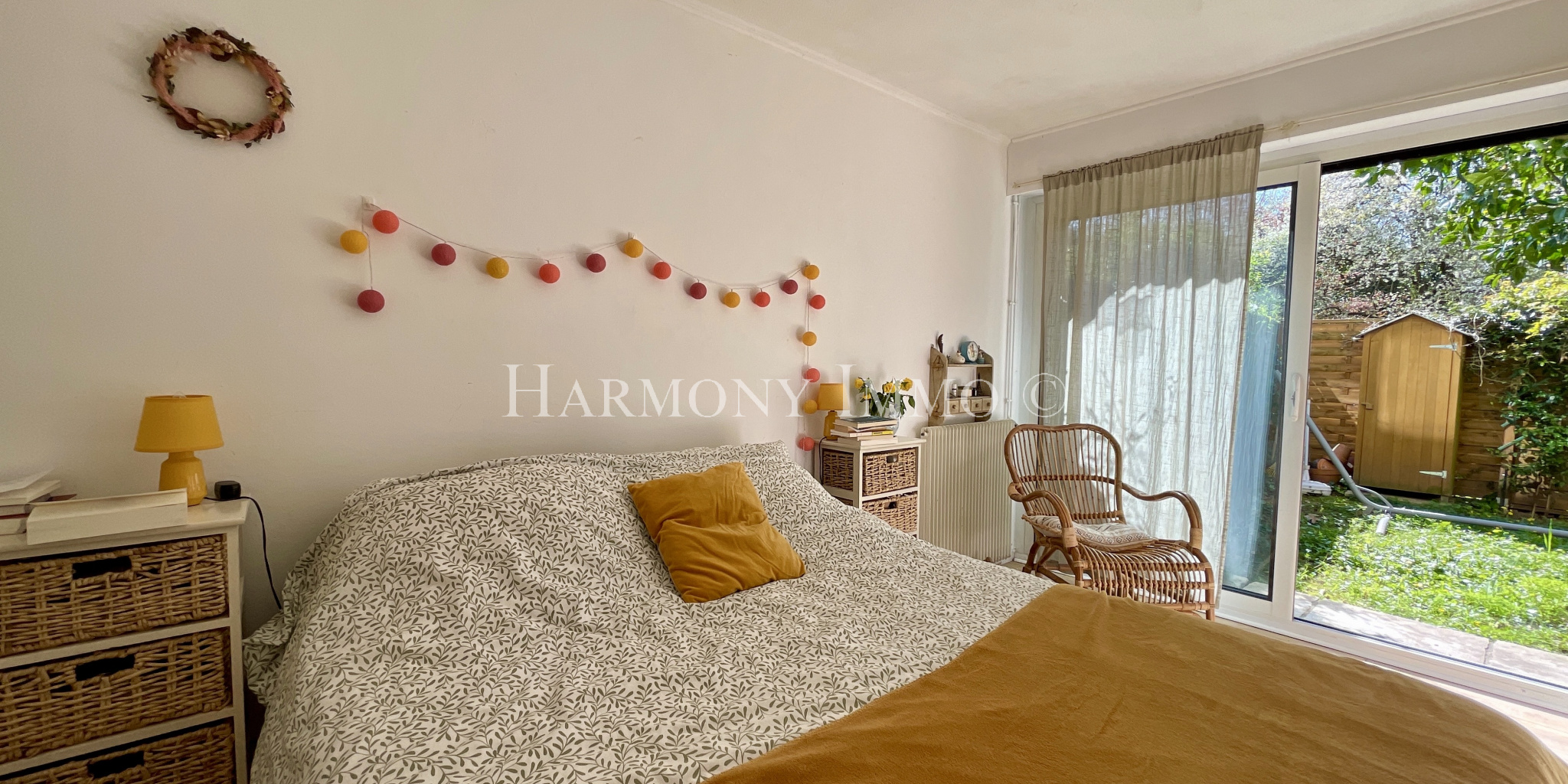 Il se compose d'une pièce de vie donnant sur le jardin, d'une cuisine aménagée et équipée, d'une chambre également donnant sur le jardin, d'une buanderie, d'un WC indépendant, et d'un accès direct à une cave depuis l'appartement.