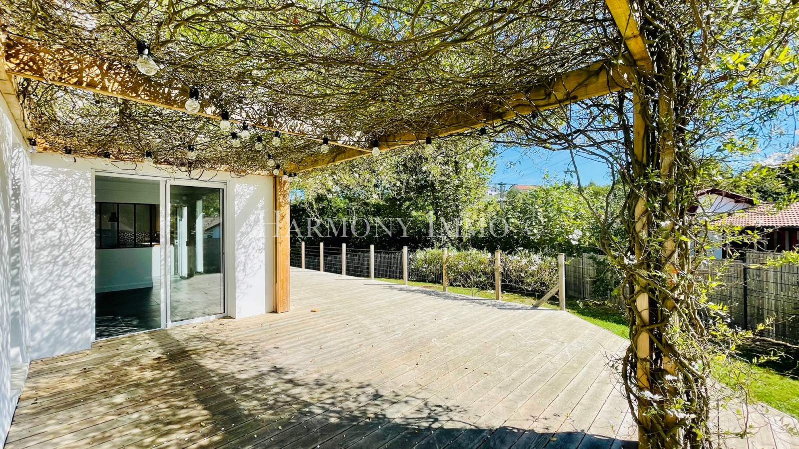A l'exterieur, une belle terrasse exposée sud Est sans vis à vis agrémentée d'une pergola recouverte d'un magnifique solanum sera le lieu idéal pour vos repas en famille ou recevoir vos amis, parcelle de 787m².