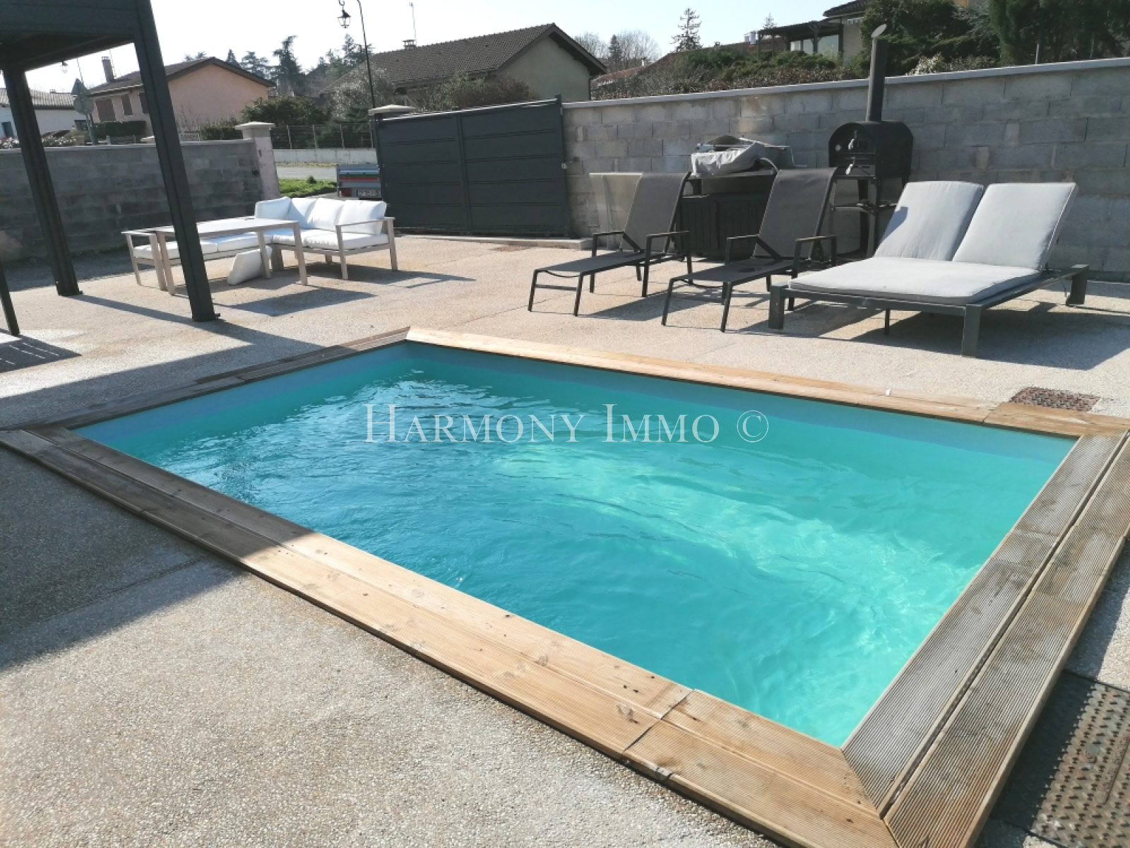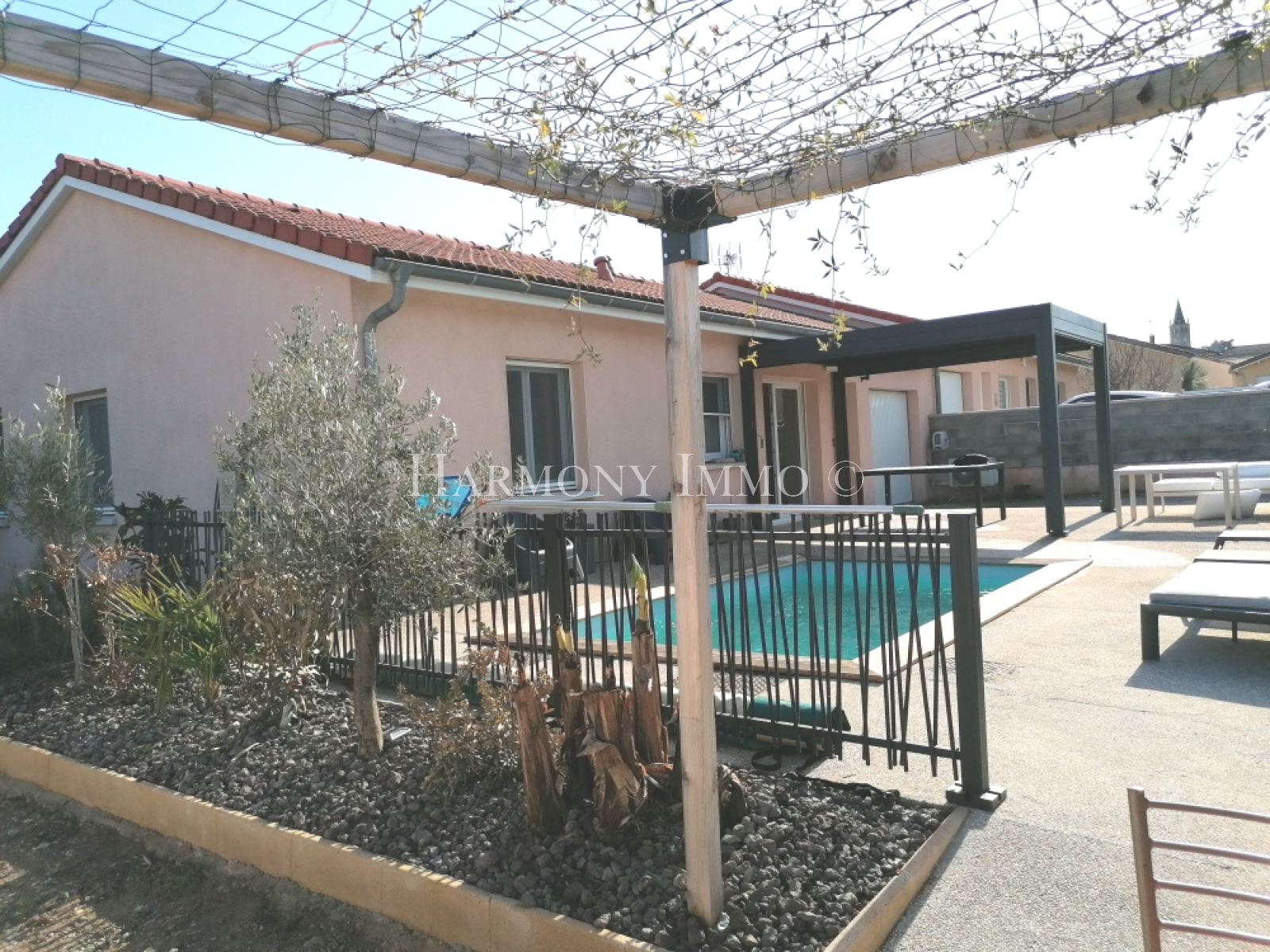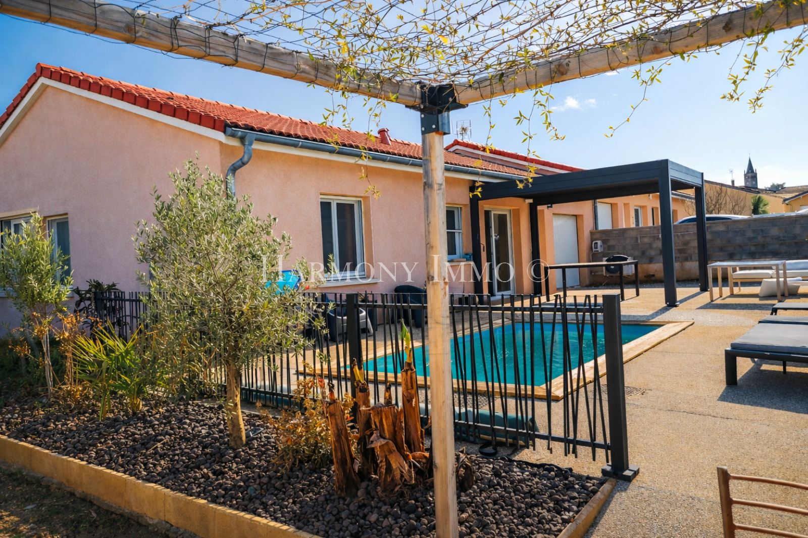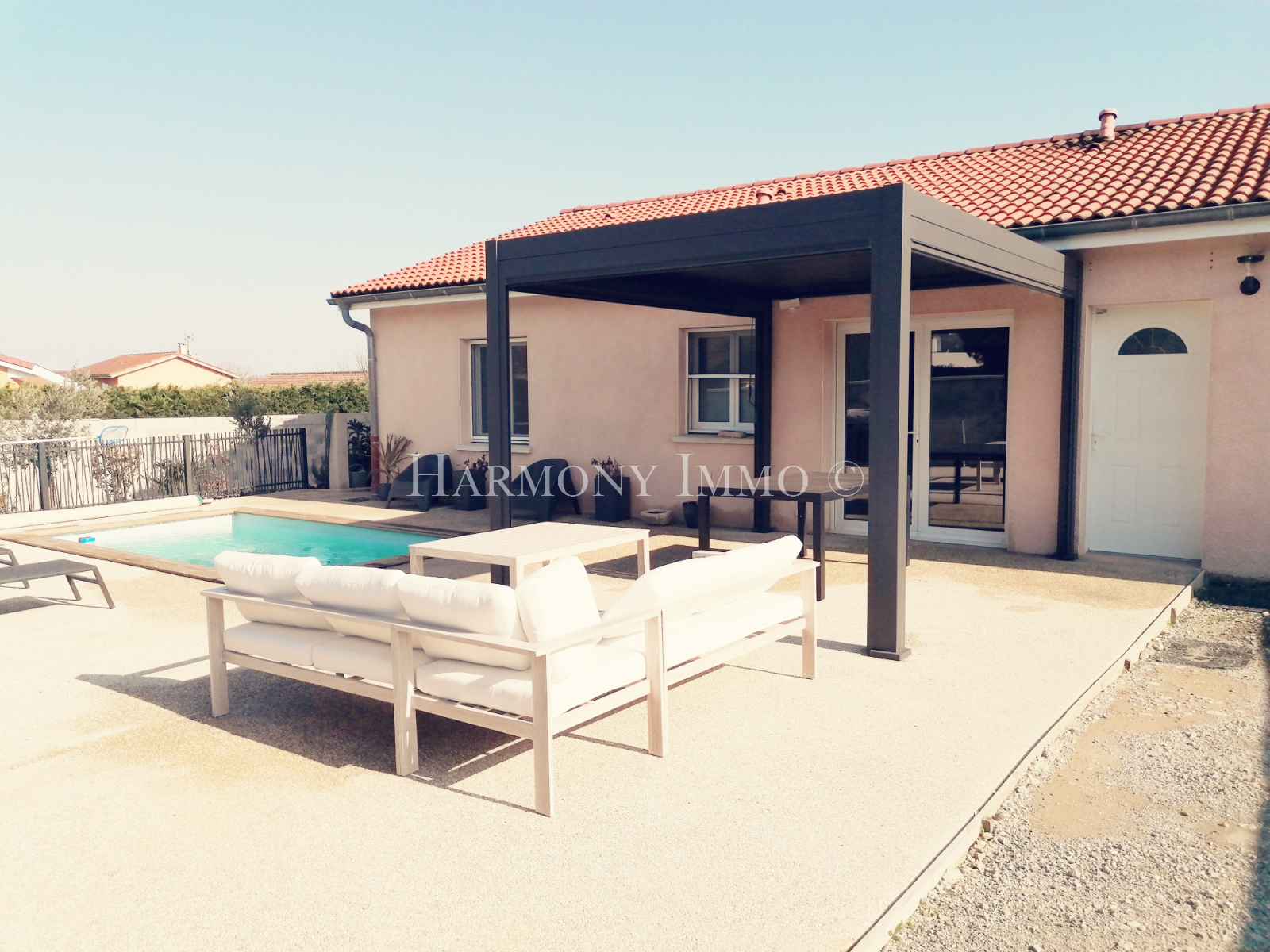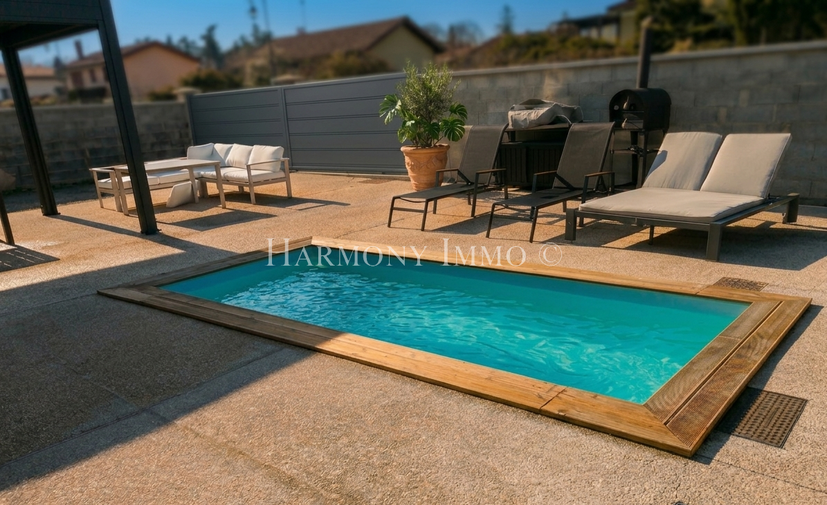 A l'extérieur, vous profiterez d'une belle piscine et d'une terrasse protégée par une pergola bioclimatique avec moustiquaires intégrées, le tout sur un terrain clos de 345 m².
