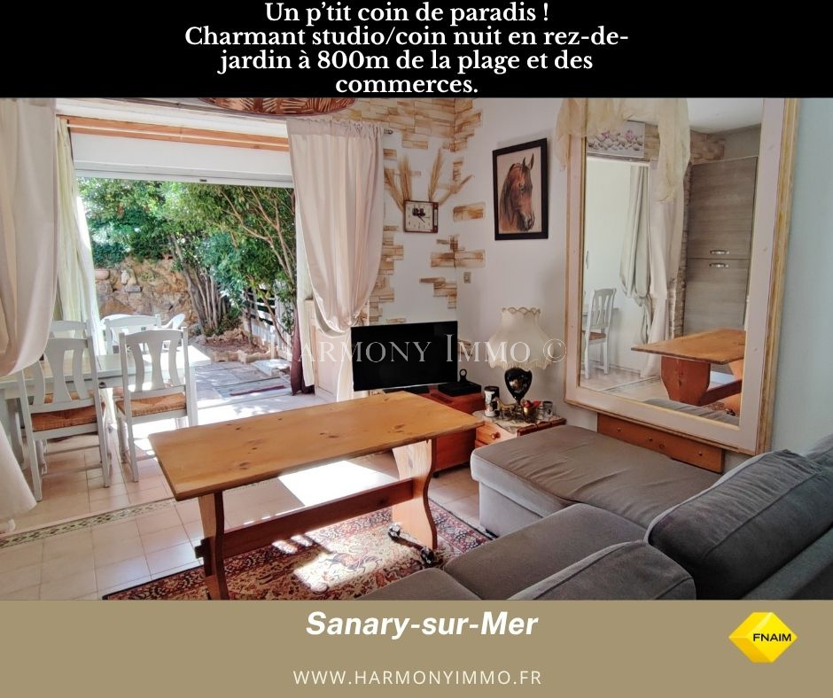 Sanary-sur-Mer (83110)Exclusivité- Un petit cocon niché dans le paisible quartier de Beaucours à 800m de la plage et des commerces! L'appartement d'une superficie habitable de 28.15m² est agencé d'un séjour/cuisine US équipée neuve ouverts sur sa loggia faisant office de salle à manger donnant sur son intimiste jardinet agrémenté d'un fonctionnel portillon donnant accès au parking privatif. Son exposition Sud-Ouest offre une belle luminosité tout l'après-midi. Mitoyen d'un seul côté dans un petit bâtiment d'un étage dans une résidence fermée.Ses atouts lui confèrent un pied-à-terre idéal avec un bon rendement locatif saisonnier ou annuel.