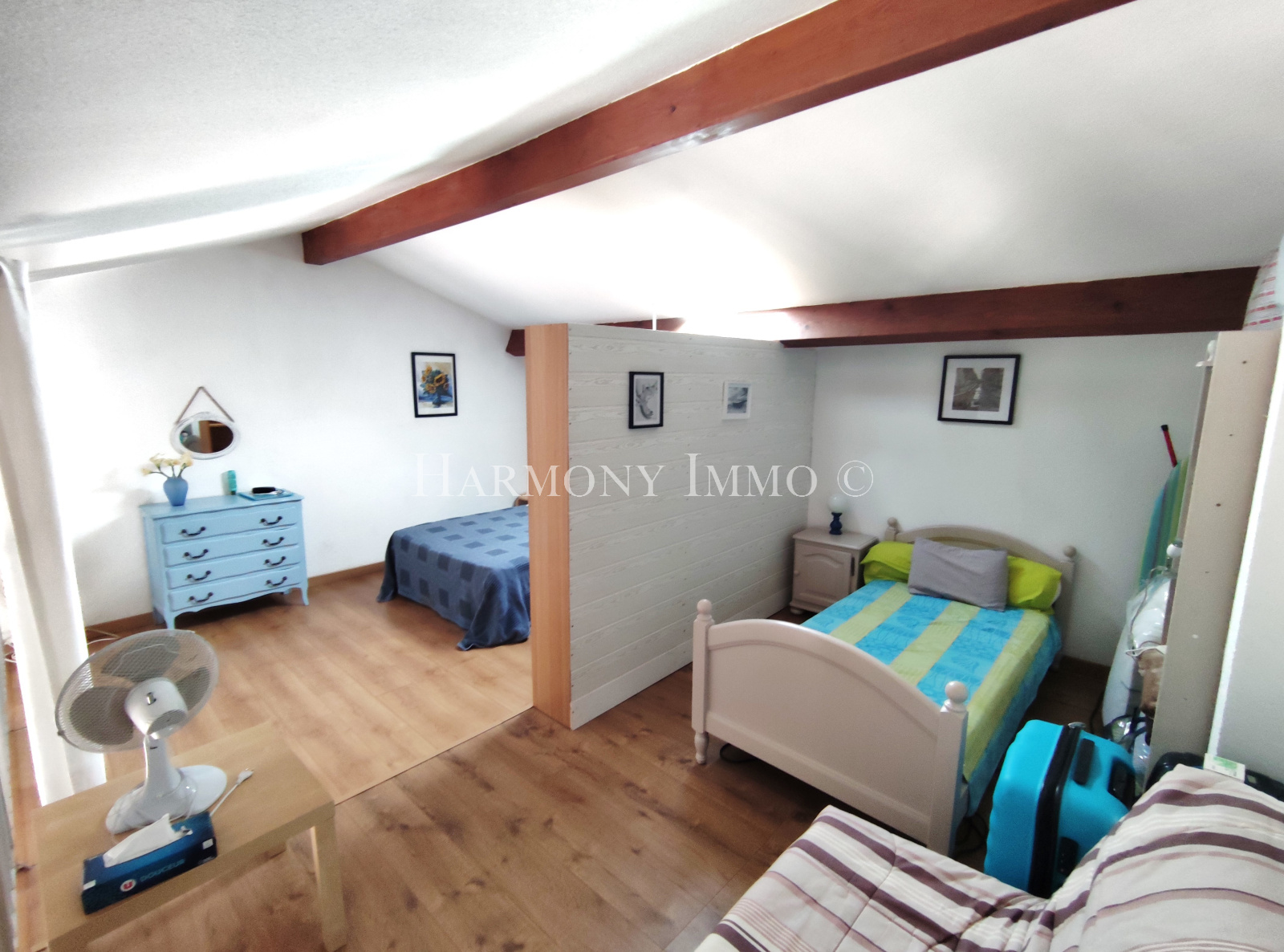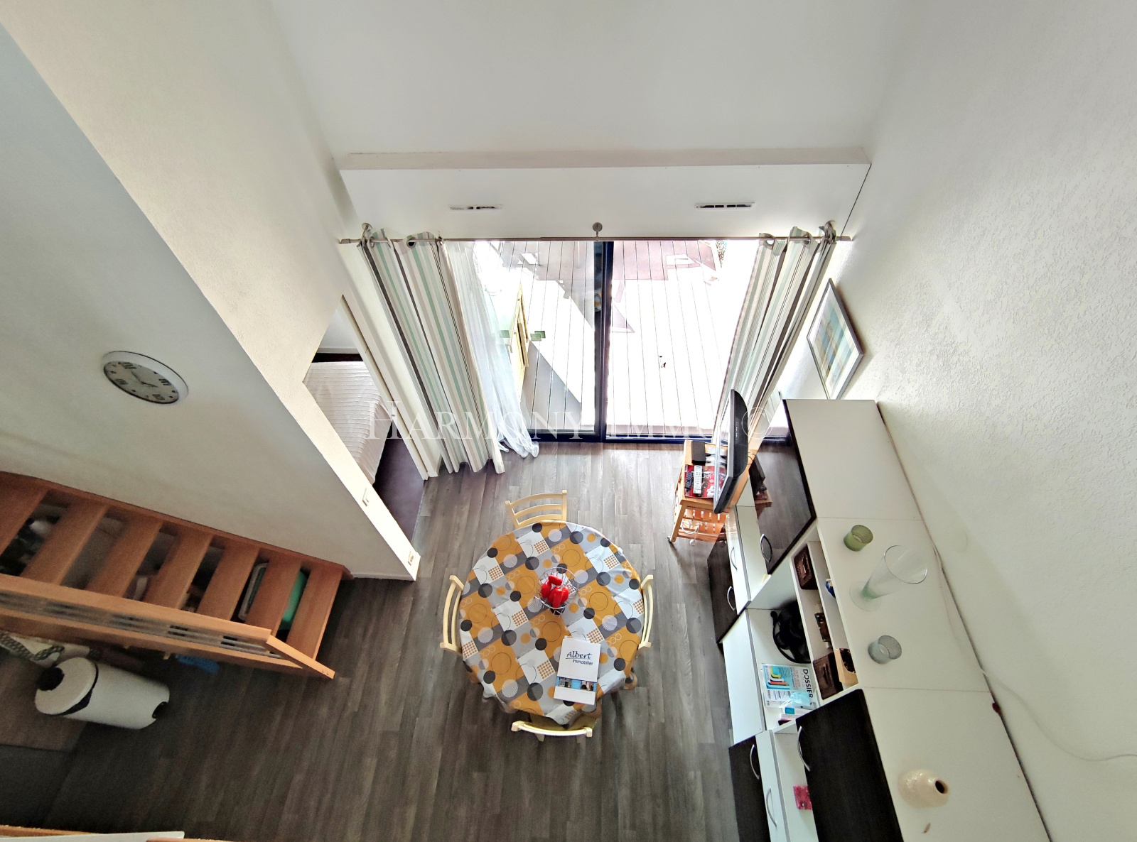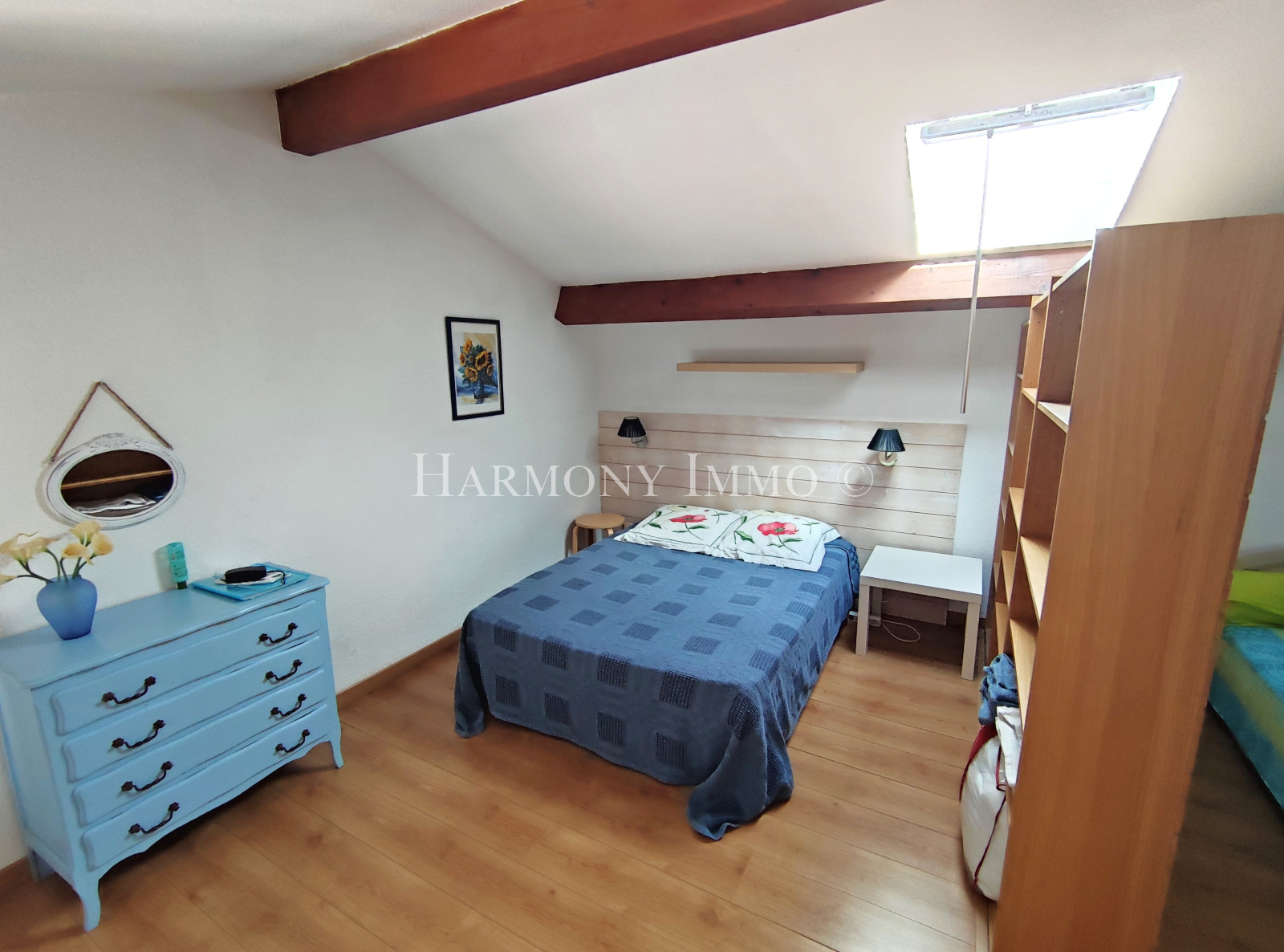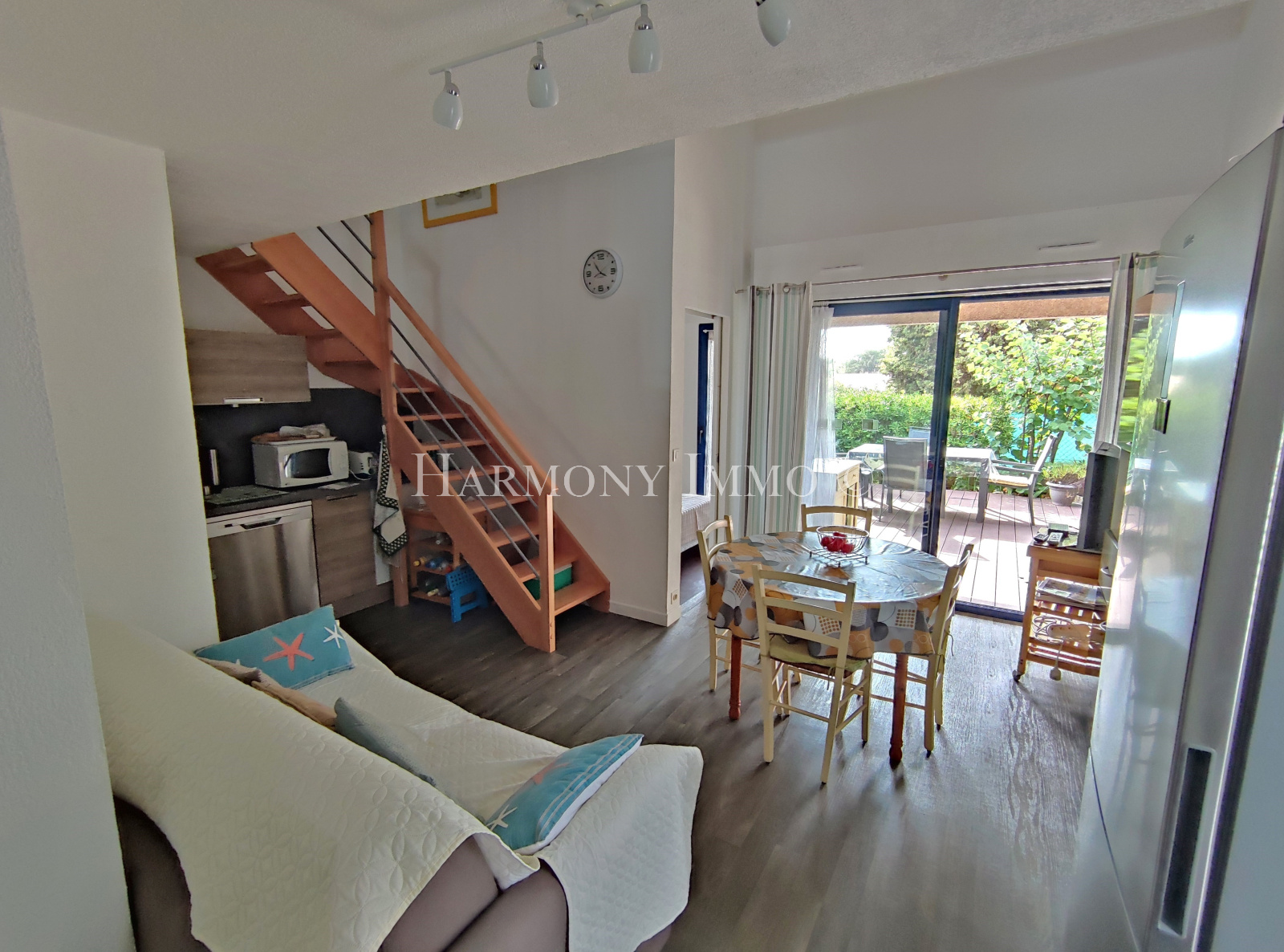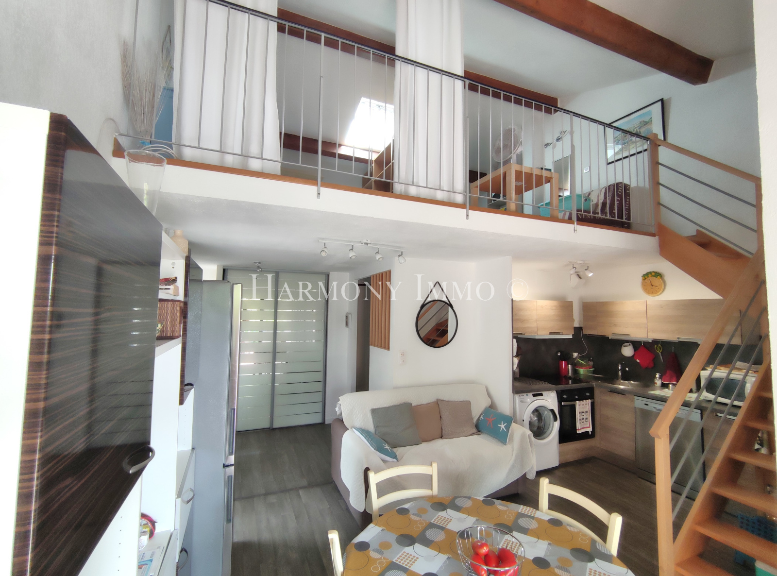 Sanary-sur-Mer (83110)Entre maison et appartement, délicieux Duplex de 53 m² LC, 73 m² habitables en Rez-de-Jardin situé dans une résidence sécurisée de standing avec piscine. L'entrée dessert la salle de douche et les toilettes indépendantes, le séjour de 22 m² avec cuisine US équipée s'ouvre sur une superbe terrasse de 18m² ensoleillée ainsi qu'une lumineuse petite chambre. La mezzanine est confortablement agencée en deux espaces nuit séparés pouvant être fermés. Spacieuse cave pouvant abriter vélos et planches à voile.