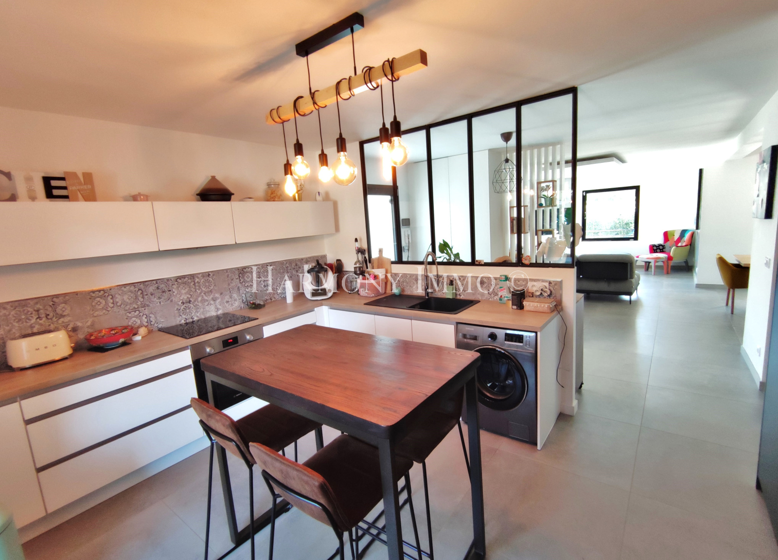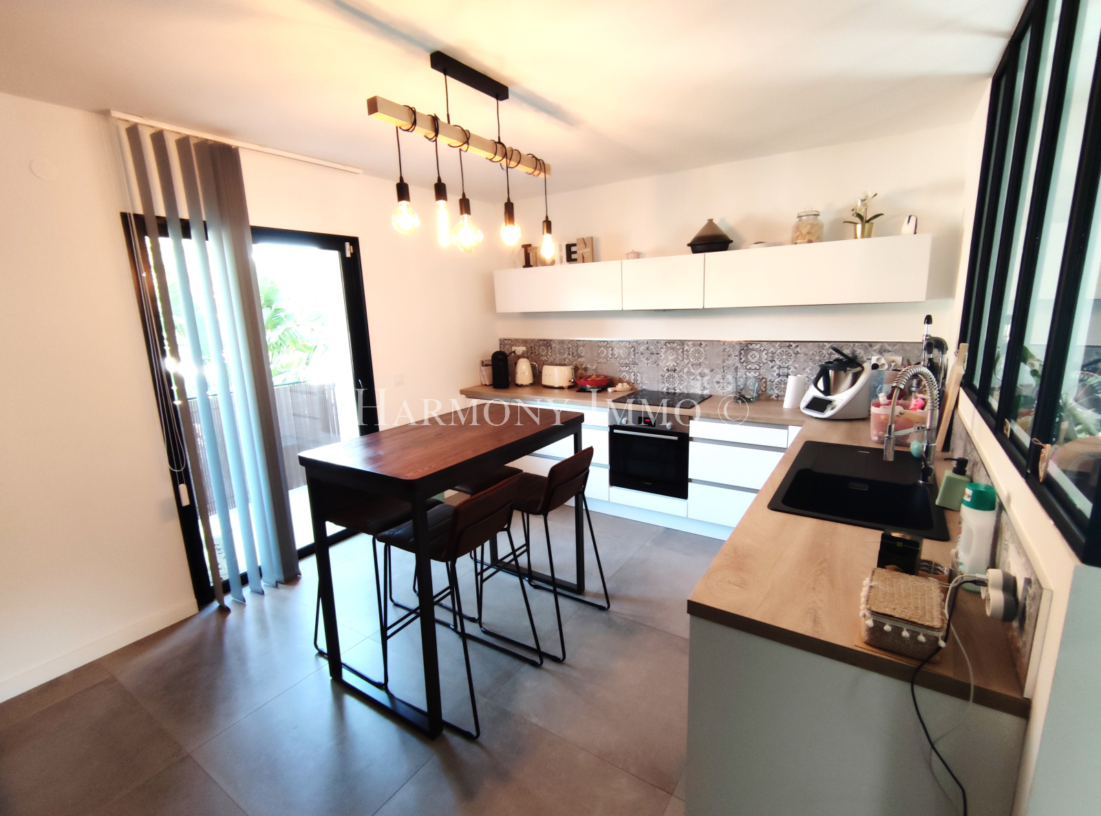 Sanary-sur-Mer (83110)Entièrement rénové en 2020, les prestations sont de haute qualité dans un esprit design très contemporain, il bénéficie en plus d'un jardin agrémenté d'une piscine! L'agencement est fonctionnel, vaste salon/salle à manger ouverts sur une belle terrasse couverte, cuisine séparée par une verrière à la touche industrielle, l'espace nuit est composé d'une suite parentale avec SDD, deux chambres, une 2ème SDD. L'ambiance est sereine, la décoration raffinée, l'extérieur invite à la convivialité et à la détente.