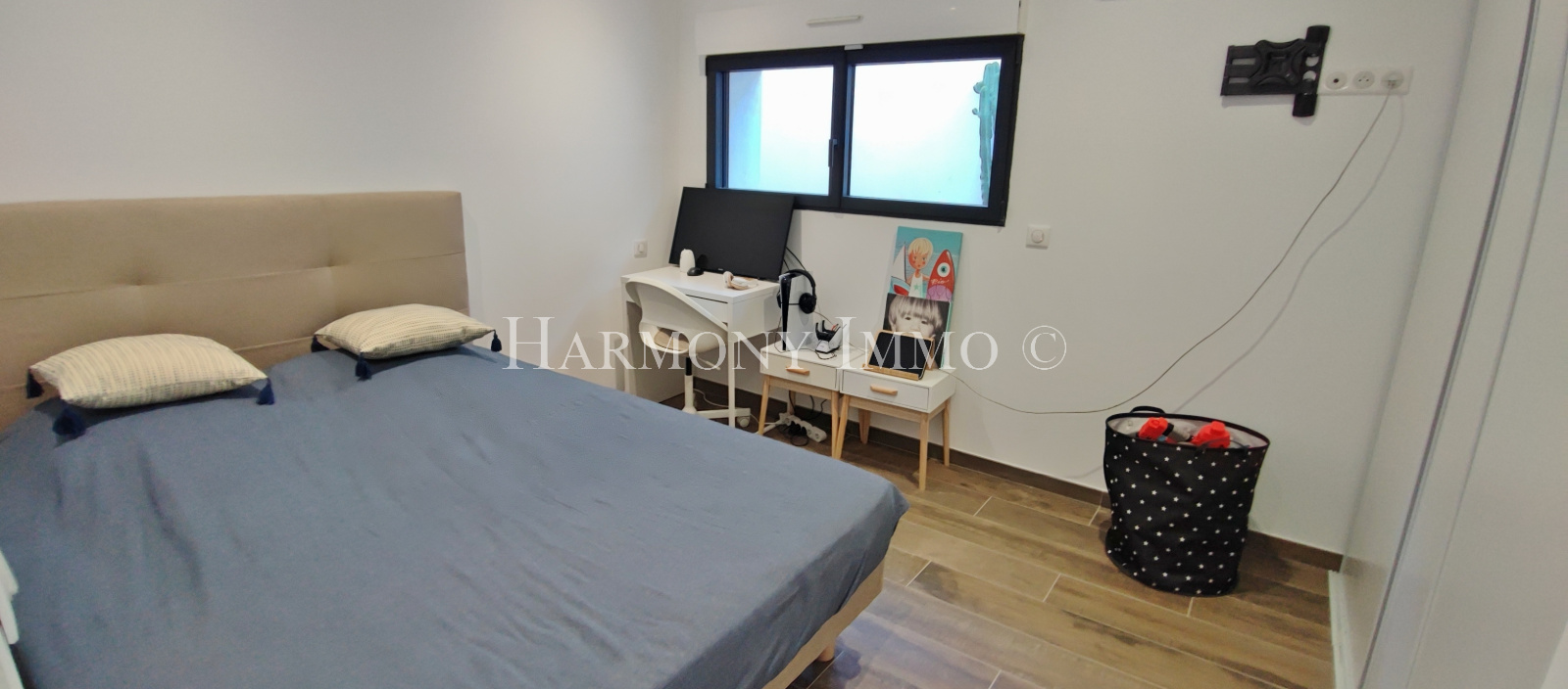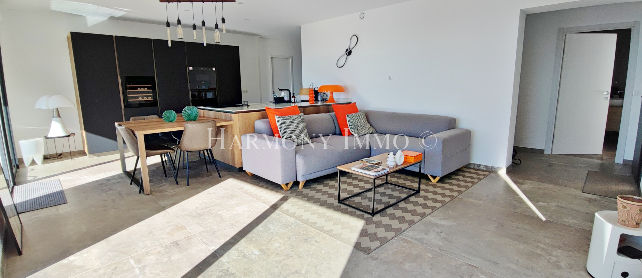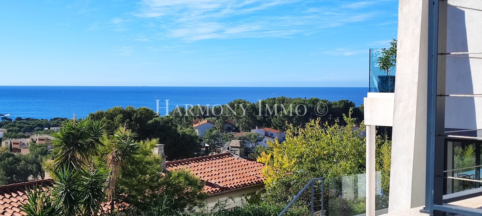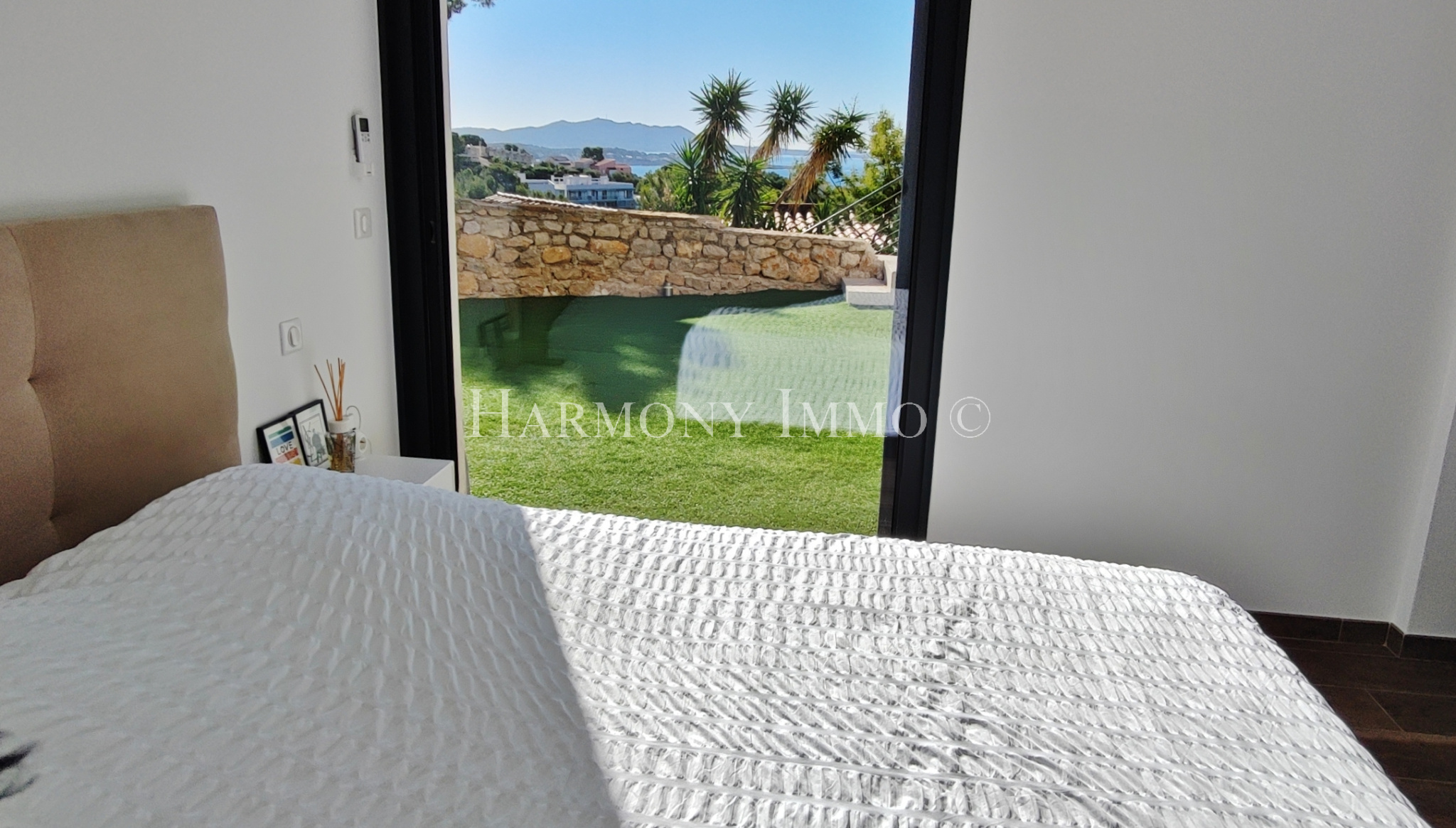 Bandol (83150)Sublime Vue Mer sur l'île de Bendor jusqu'au Gaou ! Appartement T4 de 100m² en rez-de-jardin, entièrement rénové et meublé pour une ambiance déco pleine de Peps, implanté dans une petite copropriété de 4 logements. Le vaste séjour d'une superficie de 40m² comprend une luxueuse et fonctionnelle cuisine équpée dotée d'un îlot central qui s'étend sur son balcon Sud face à la mer et donnant sur le jardin. Trois chambres équipées de leur SDD et placard, dont une vue mer sur jardin avec dressing, une buanderie, deux toilettes. Conviviale terrasse couverte de 28m² alimentée pour accueillir une cuisine d'été et profiter de belles tablées estivales ainsi qu'un exceptionnel solarium en Roof Top pouvant recevoir un jacuzzi avec vue sur la "Grande bleue"! Deux places de parking privatives, une cave. Calme absolu, à 10mn à pied des commerces ( Supermarché-Pharmacie-Boulangerie-Restaurant) et à seulement 2 kms du port de Bandol ! Ce bien allie délicieusement la légèreté du vivre en appartement tout en bénéficiant des extérieurs d'une villa sans entretien, le rêve !