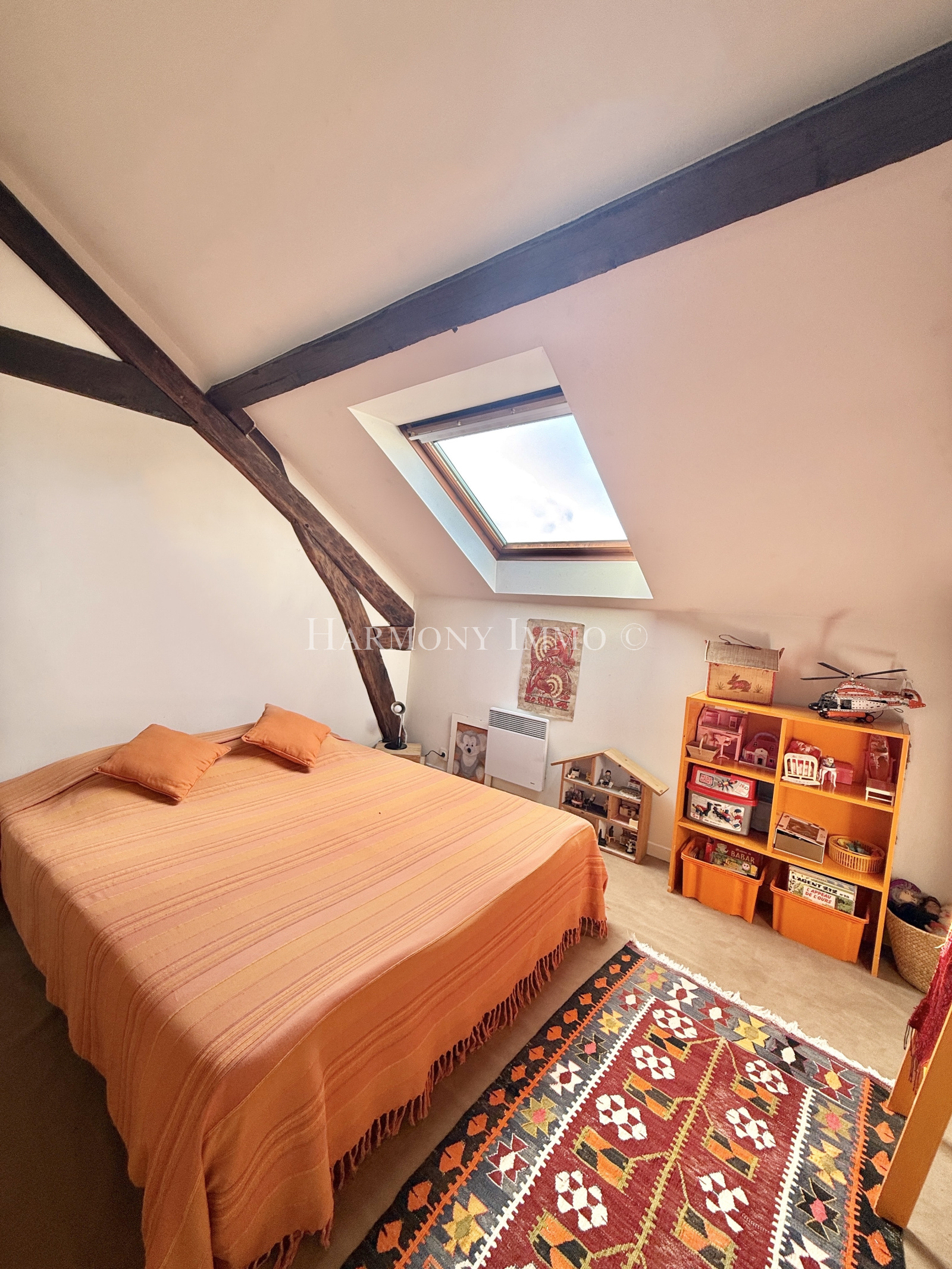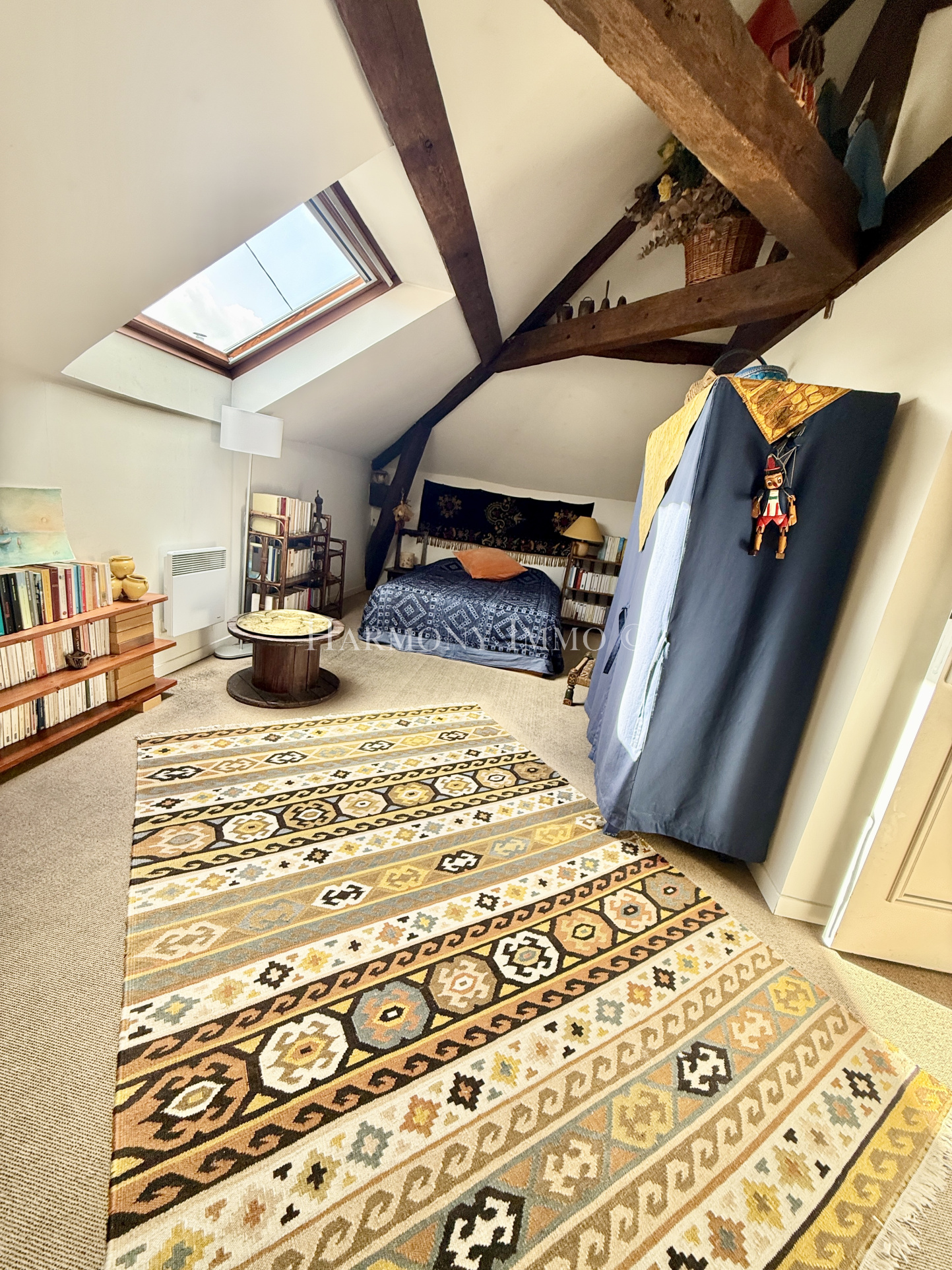 À l’étage, trois chambres et une salle de bains avec WC. Le dernier niveau propose deux chambres supplémentaires, un bureau et une salle d’eau avec WC.