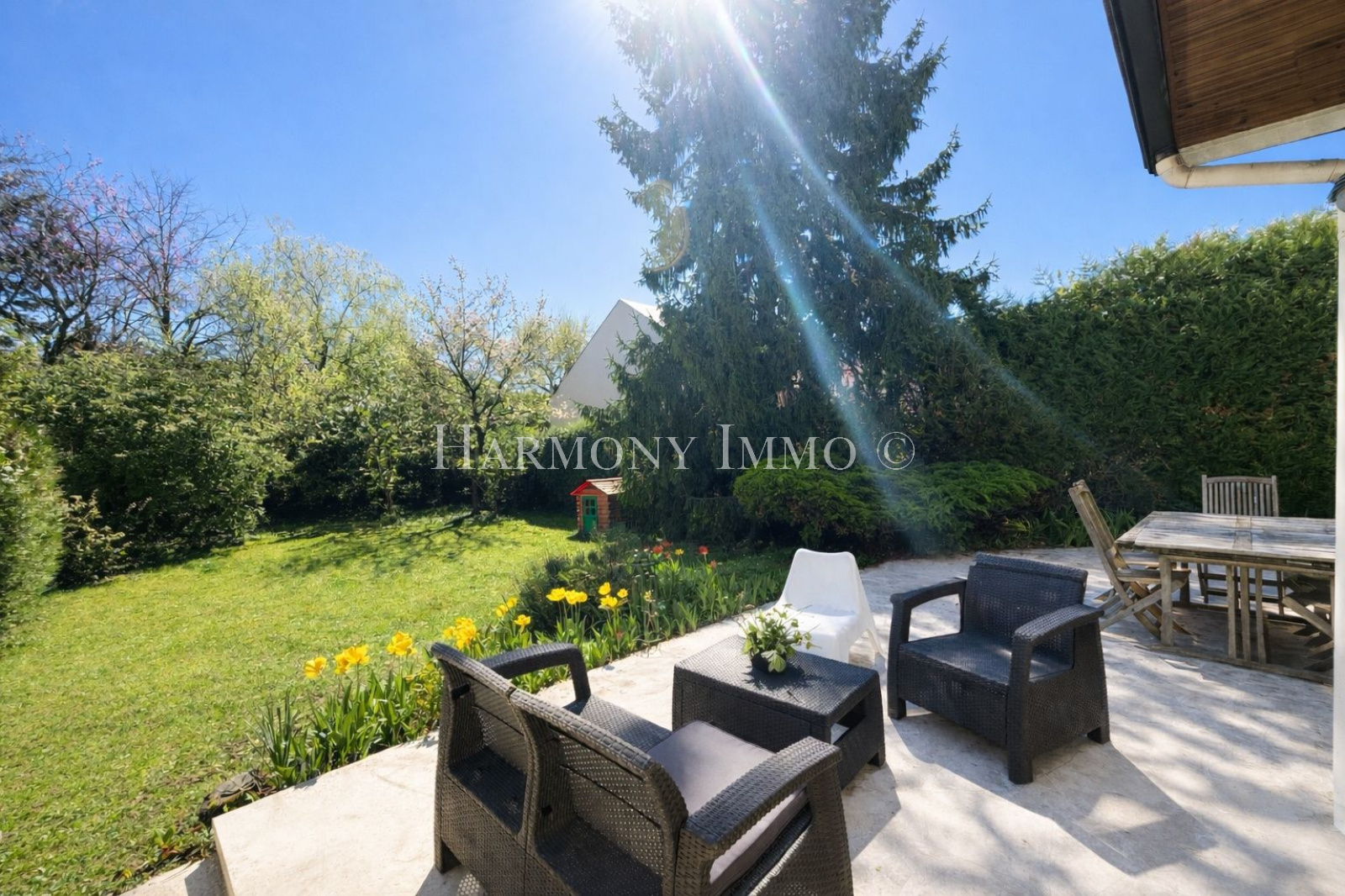 À l’extérieur, vous profiterez d’un grand jardin sans vis-à-vis et d’une terrasse idéale pour les moments de détente en famille.